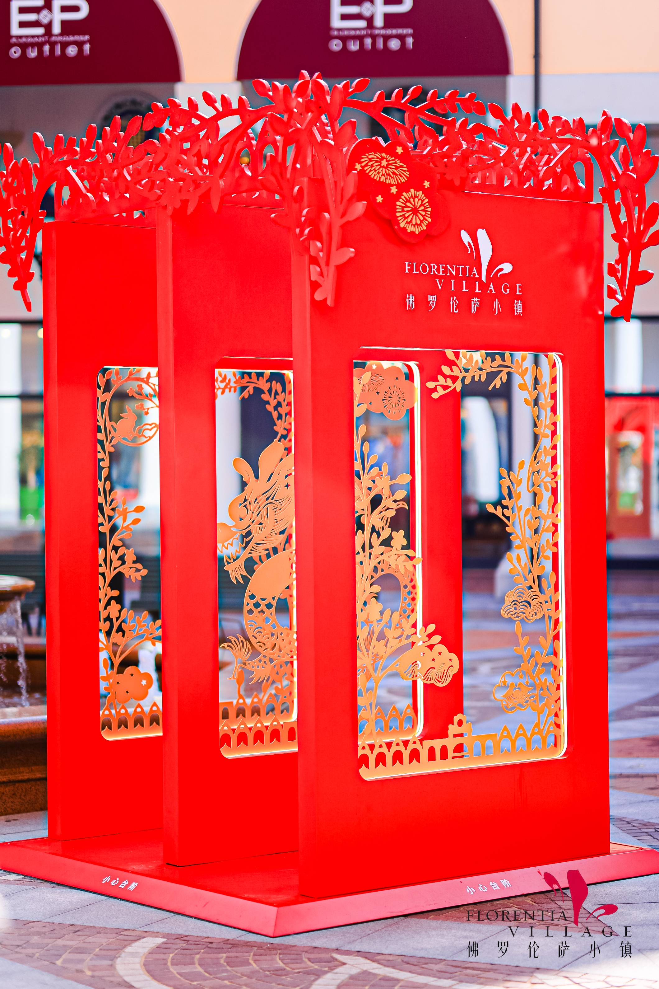 Complementing these installations, the shop windows throughout each Florentia Village were decorated with papercuts inspired by Qiu Jia’s Year of the Dragon artwork, injecting a touch of vibrant color to the villages, and elevating the festive ambiance.