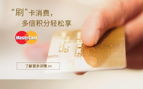 即日起至12月31 日持交通银行、上海银行、民生银行、花旗银行Master Card信用卡单笔消费满1,800元即获得3倍Master Card积分。另自12月25日至1月3日期间,持交通银行、上海银行、民生银行、花旗银行Master Card信用卡单笔消费满1,800元更享5倍Master Card积分。12月1日至1月31日,持交通银行、上海银行、民生银行、花旗银行Master Card信用卡参与“百万积分任你刷”,刷卡排名第一名即获得50万积分,第二名获得20万积分,第三、四、五名分别获得10万积分 。